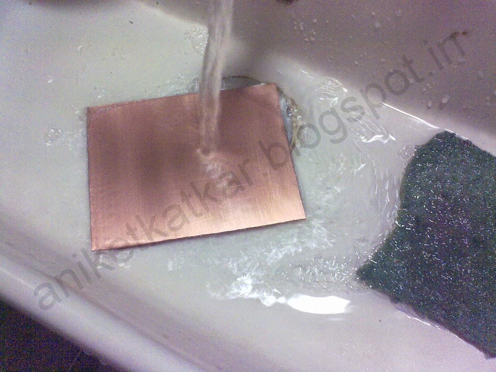 Step 9. Continue this process until all the copper from the plate washes away leaving only the marked circuit behind.
